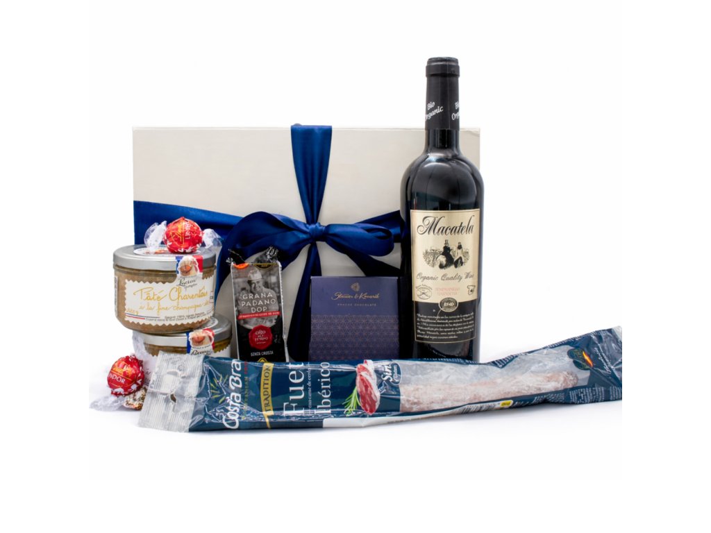 Luxusní dárkový set s kvalitním vínem, vybranými delikatesami a sladkou tečkou. Stylová kombince chutí, která potěší milovníky dobrého jídla i elegantních dárků.