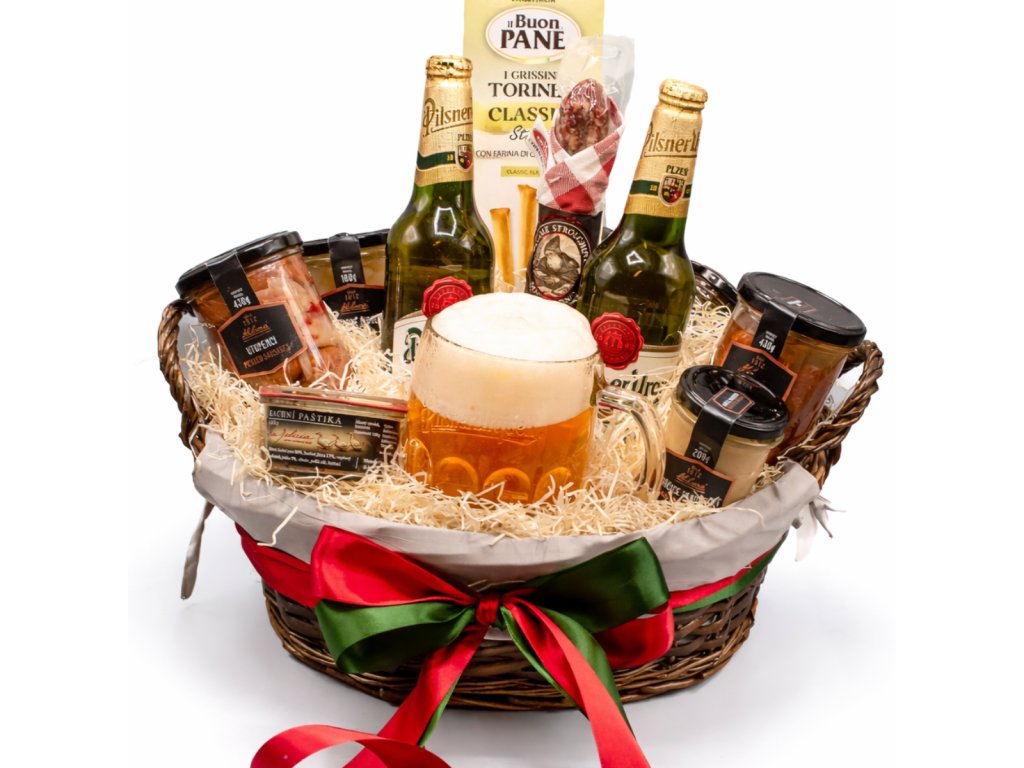 Poctivý dárkový koš s pivem a výběrem slaných delikates. Ideální dárek pro milovníky dobrého piva a tradičních chutí.
