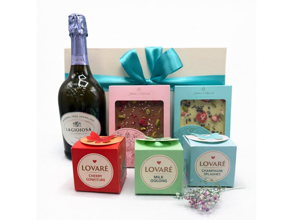 Elegantní dárkový set plný barev, chutí a radosti s nealkoholickým šumivým vínem, které si může vychutnat opravdu každý. Výběrové čokolády a kvalitní čaj tvoří dokonalý dárek pro každou příležitost.