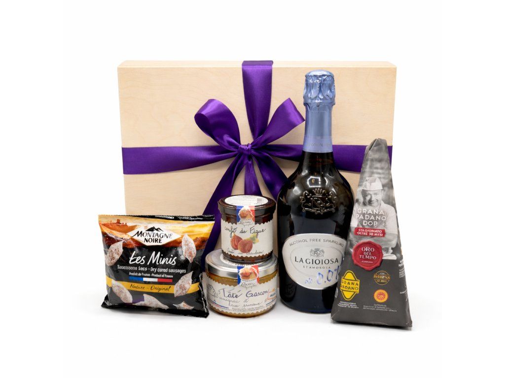 Luxusní dřevěná krabice pro vyjimečné chvíle bez alkoholu. Jemné nealkoholické šumivé víno doplňují vybrané delikatesy. Ideální dárek pro ty, kteří si chtějí dopřát luxusní zážitek s lehkostí.