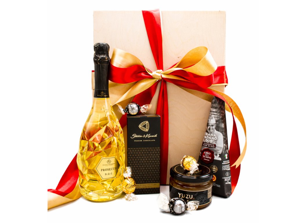 Slavnostní dárkový set s proseccem a výběrem prémiových delikates. Elegantní dárek, který rozzáří každou výjimečnou příležitost.